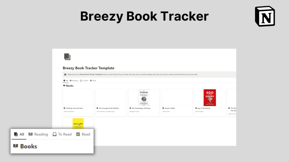 Streamline your reading journey with the Breezy Book Tracker Template for Notion!