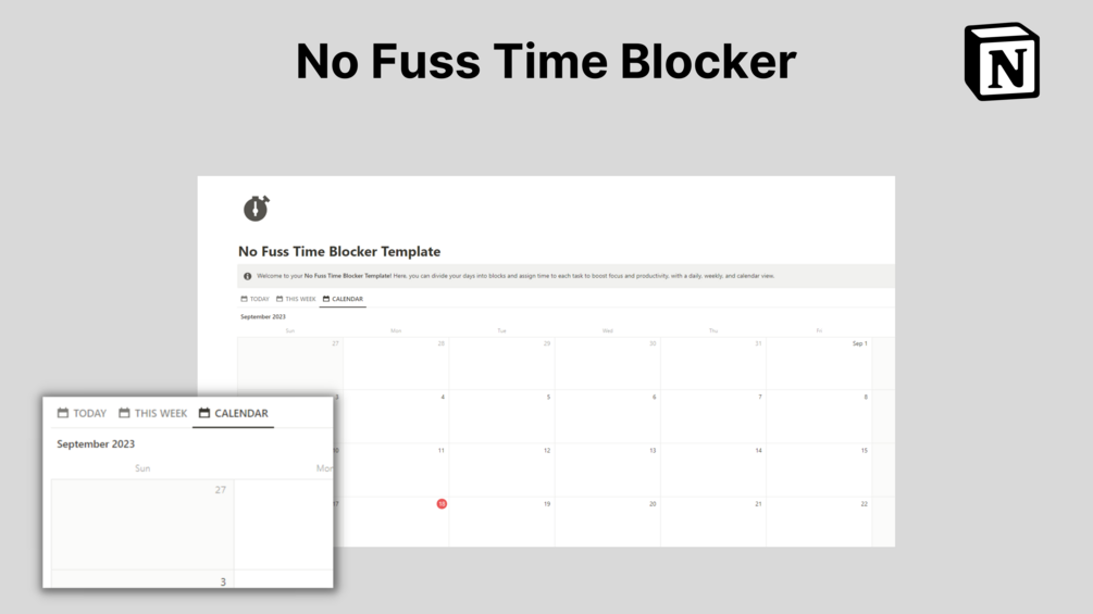 Streamline your productivity with the No Fuss Time Blocker Template for Notion.
